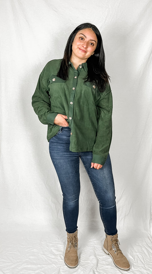 Aspen Fuzzy Button Down Shirt -Hunter Green